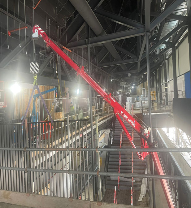 Our skilled team of lift personnel were utilised to operate and supervise the crane throughout the duration, allowing us to showcase the benefits of the articulated fly-jib to precisely install the balustrades, safely and efficiently for our client.